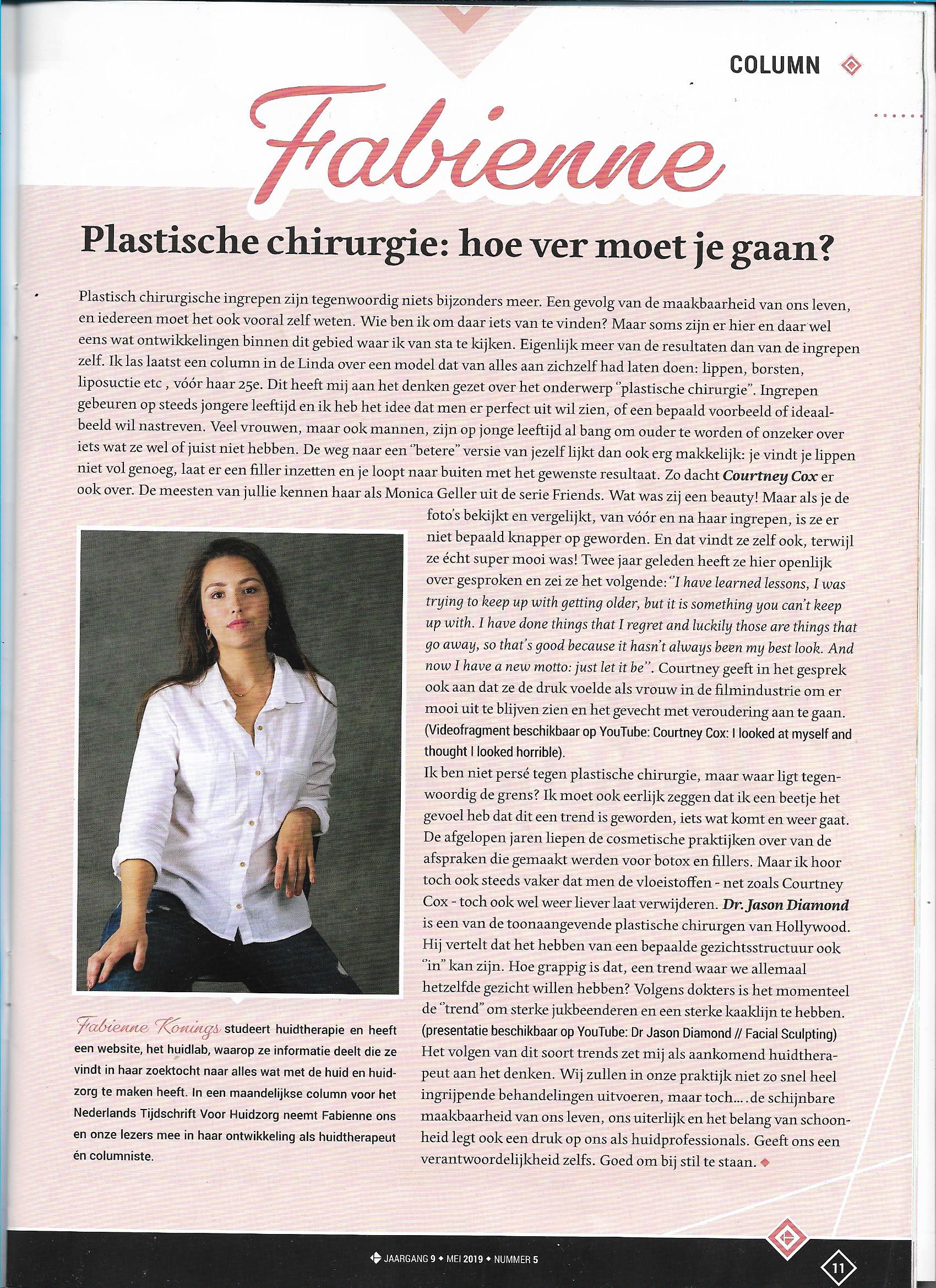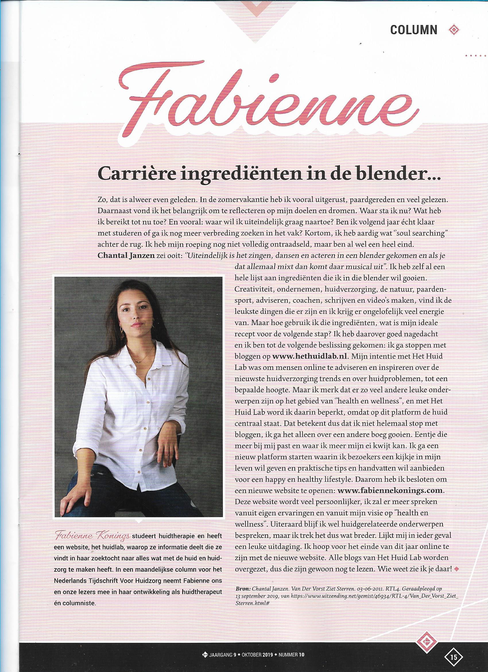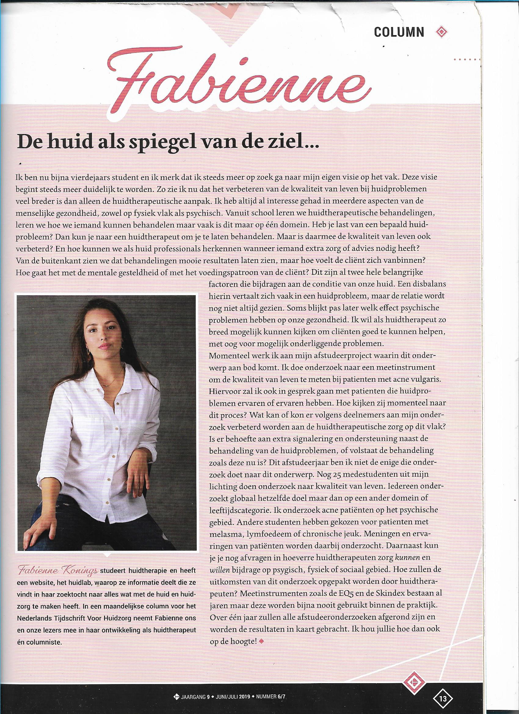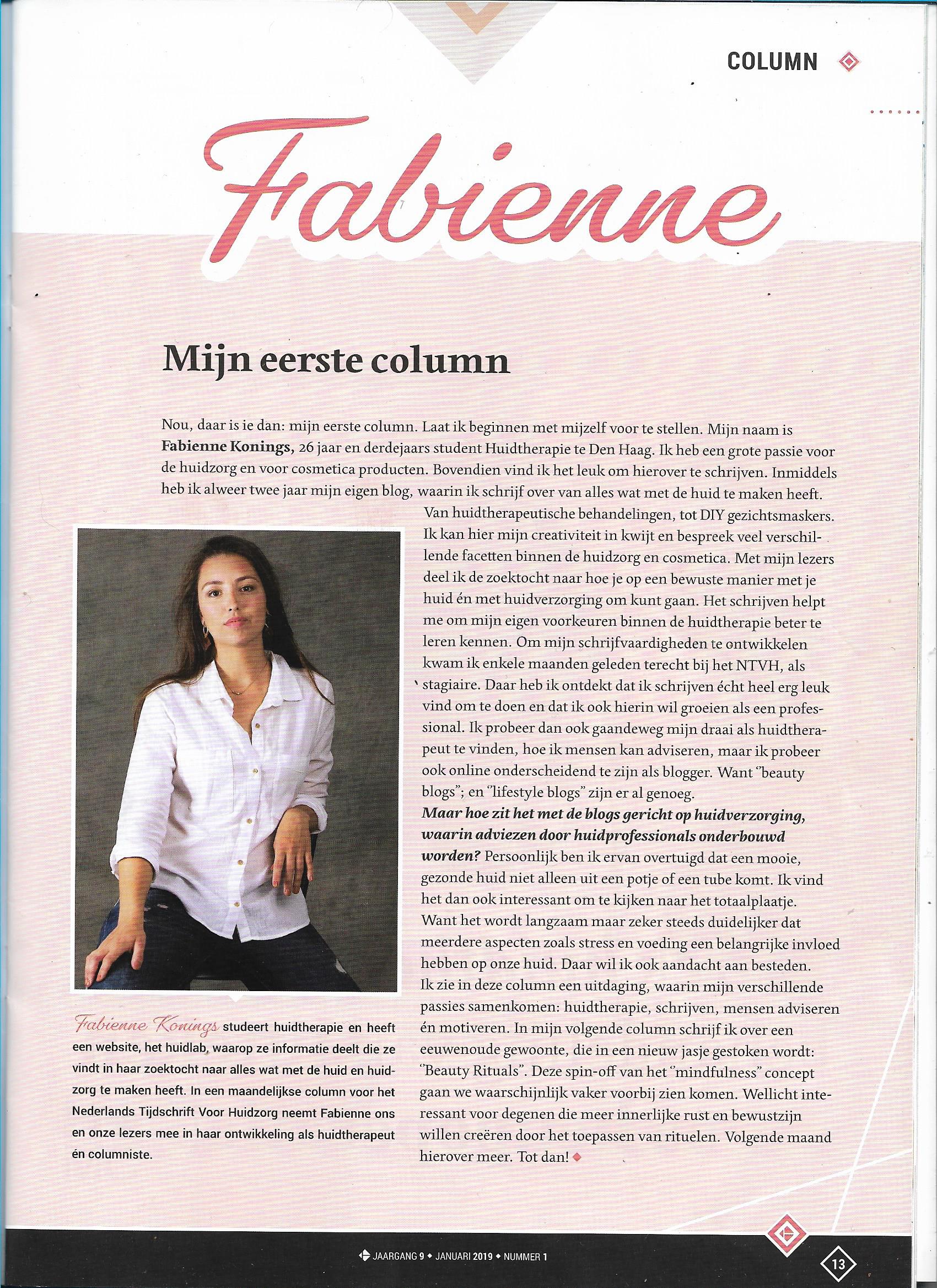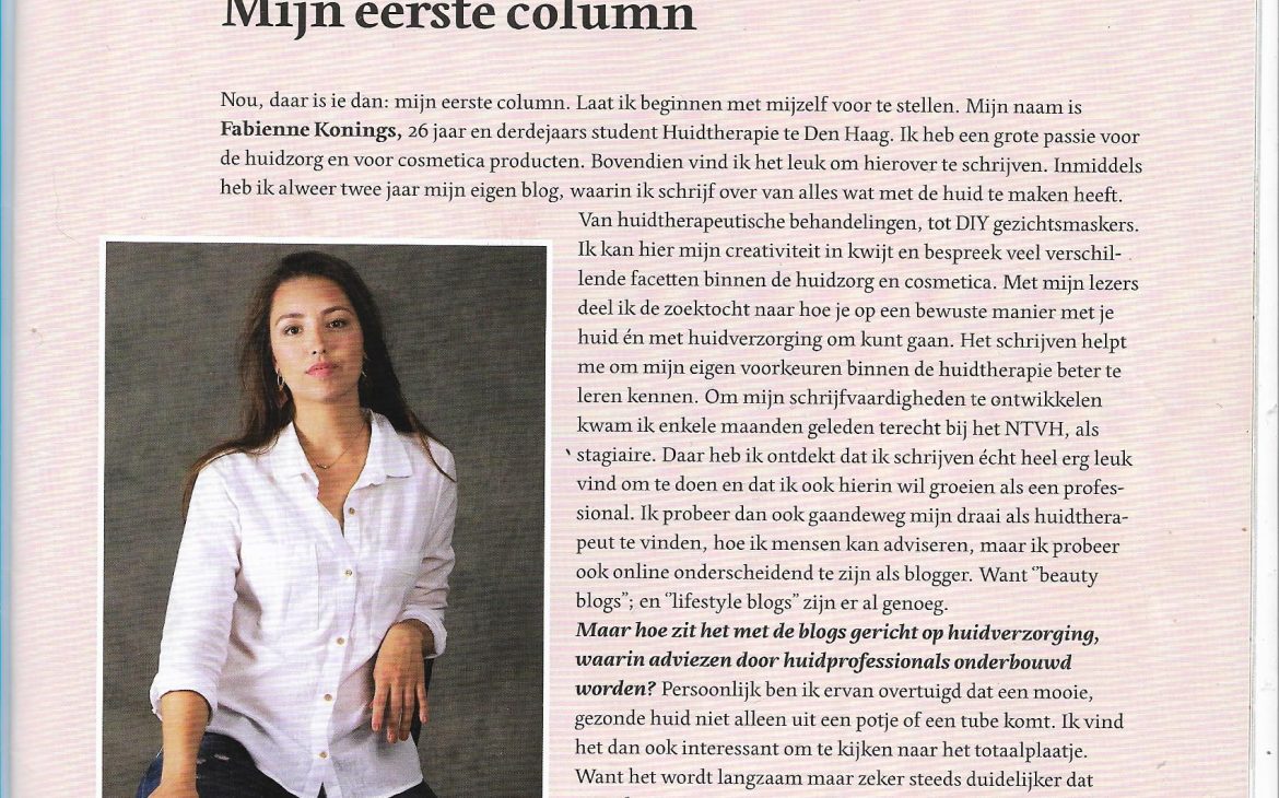column 1. Mijn Eerste column Posted on 2 januari 20182 december 2019 by Fabienne Nederlands Tijdschrift Voor Huidzorg (NTVH)