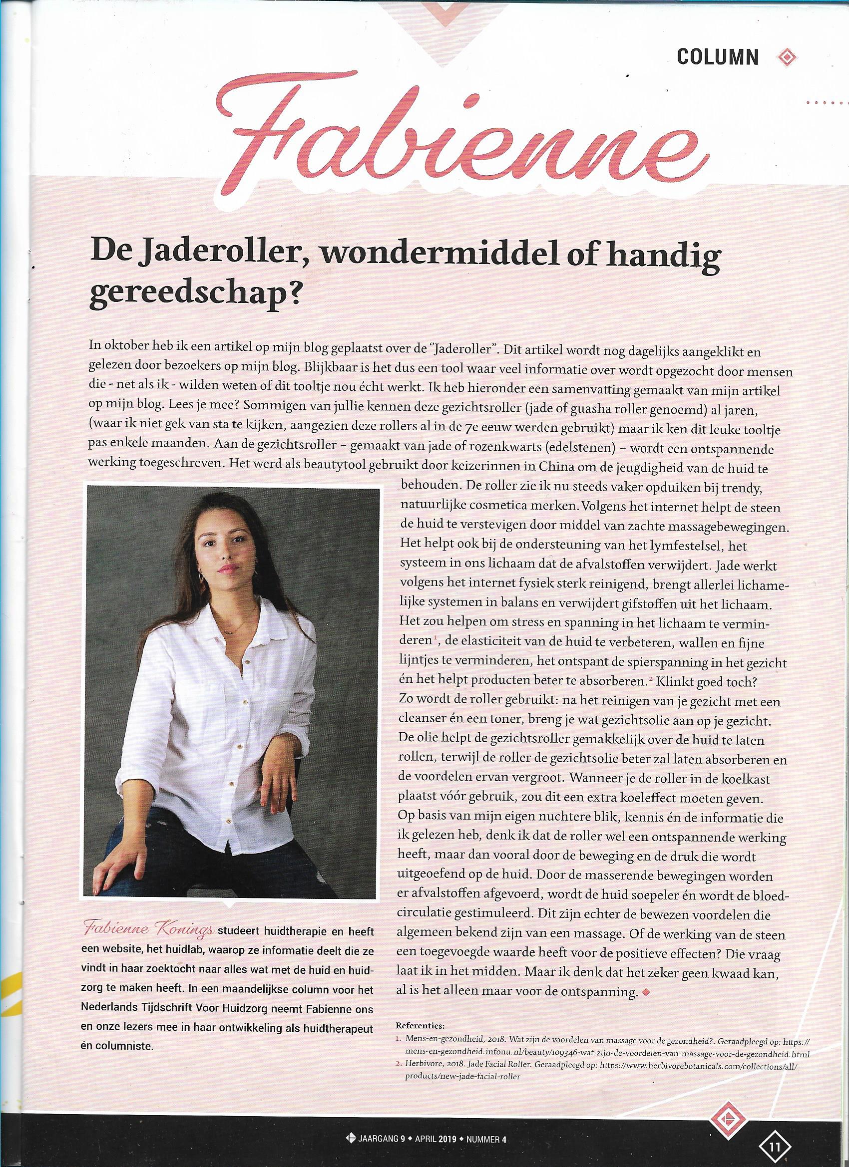 column 4: werkt de jade roller nu echt? Posted on 2 april 20182 december 2019 by Fabienne Nederlands Tijdschrift Voor Huidzorg (NTVH)
