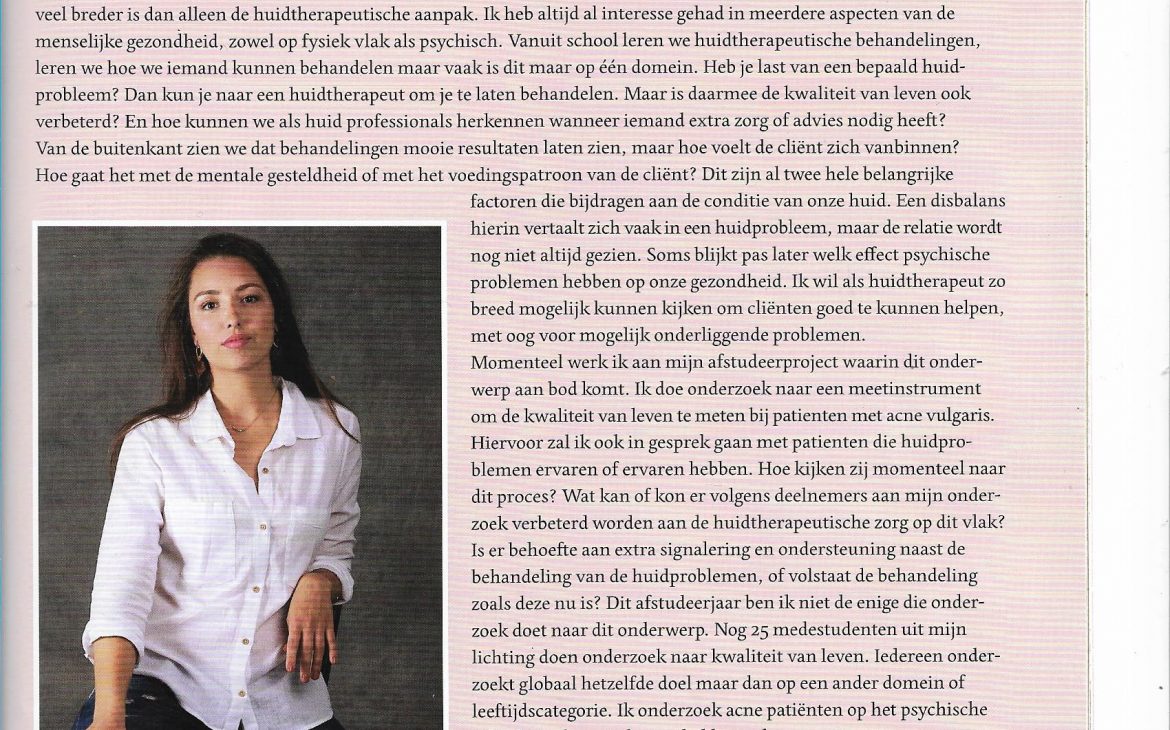column 6. het onderwerp van mijn afstudeeronderzoek Posted on 2 juni 20182 december 2019 by Fabienne Nederlands Tijdschrift Voor Huidzorg (NTVH)